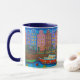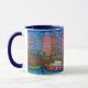 En livlig och stiliserad nattscen av Amsterdams färgstarka, smala hus längs kanalerna på mugg av den populäre konstnären Lisa Lorenz©