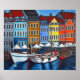 Snygg avskrift av nyhavn-hamnen i Köpenhamn målad i en snyggt, färglös, livlig sammansättning av den populäre konstnären Lisa Lorenz