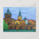 Vibrant, stiliserad målning av vackert Prag och Charles Bridge längs Vltava-floden i Prag, Tjeckien av popular Artist Lisa Lorenz på ett vykort.