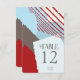 Att blockera abstrakt färg i en glad vinterpalett med blues och tegelrött ger en slående bakgrund för biet i denna bröllop-svit i contemporary. Det kort för bordsnummer i bröllop som visas här är ett öga-fångsttillskott till er dekoration i bröllop bord. Lägg till namn, bröllop-datum och bordsnummer med hjälp av den angivna mallen. Sök i ID740 om du vill se andra alternativ för färg och ytterligare produkter med den här designen.