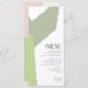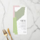 Att blockera abstrakt färg i en helig färg palett av ro rosa och vår grönt är en slående bakgrund för biet i denna contemporary-svit. Kortet "Menu" i bröllop som visas här är ett öga-fångsttillskott till din bord-dekoration. Lägg till menyval, initialer och bröllop med hjälp av den angivna mallen. Sök i ID740 om du vill se andra alternativ för färg och ytterligare produkter med den här designen.