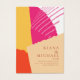 Blockeringen av abstrakt färg i en fet färg palett med shock rosa, tangerin orange och gyllene gult ger en slående bakgrund för biet i denna contemporary bröllop svit. Kortet för webbplatshöljet i bröllop som visas här är ett sätt att fånga upp öga för att meddela viktig information till gästerna i bröllop. Med hjälp av den medföljande mallen kan du enkelt använda namn och webben adress. Sök i ID740 om du vill se andra alternativ för färg och ytterligare produkter med den här designen.