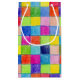 Kvadratisk papper färgad i hand med färgpennor i slumpmässigt färg. Inga två intilliggande fyrkanter har samma exakta färg. De pappra diagramkonturerna består av ljusblått linjer.