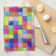 Kvadratisk papper färgad i hand med färgpennor i slumpmässigt färg. Inga två intilliggande fyrkanter har samma exakta färg. De pappra diagramkonturerna består av ljusblått linjer.