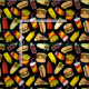 Sömlös mönster av snabbmatsikoner i färgad. Sömlös mönster. Anpassningsbarnas bakgrund färg.