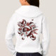 Den här flickans basketlag i färg har en "explosion" av olika storleka basketbollar som har omväxlande kolonner och vita färgade paneler och maron, grått och vita stjärnformer - anpassa med idrottsmannens namn, monogram- och jersey-nummer - designen finns på baksidan av hoodie men kan flyttat till eller dupliceras på framsidan - av katz_d_zynes