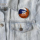 Den här basketbollknappen i färg för pojkar och flickor i anpassningsbarna har en realistisk bild av en basket som har två färgade paneler - en blå och en vit - som anpassar sig efter idrottsmannens namn och ett jersey-nummer i ett brev-teckensnitt med variositet - av katz_d_zynes