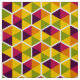 Ett geometriskt mönster som består av sex sidade hexagoner dividerat med ett smalt vitt utrymme som var och en är indelat i sex färg-segment i fem harmoniska färger. Varje vågrät sexhörning roteras systematiskt med 60 grader till sin närmaste granne som skapar ett vackert varierat mönster.