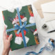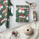 Färg Grönt Stars Tyska julafton Wrapping Papper har en vacker vattenfärg av en tysk shepherd med en röd julklapp och en grönt med färgstarka vattenfärgade stjärnor.