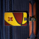 Den här sportbasketens matade bagagemärke som är lämplig för en pojke eller flicka har en abstrakt överdimensionerad basket med omformade månar- och guld-paneler, som du kan anpassa med idrottsmannens namn och monogram på framsidan - anpassa adress och mobila nummer på baksidan - av katz_d_zynes