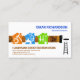 En vit täckmantel har tre bostäder som innehåller handyman verktyg. Verktyg kan representera en del av det arbete du kan erbjuda, t.ex. brunt hem med hammarskruvmejsel kan representera hemreparationer, ombyggnad, det blå hemmet för rörmokeri och elverk, gröntens hem för , landskapsvård osv. Färgremsan från rullborstningen som har ett underliggande timmer från lagrar kan representera snickeri- och målarverk. Över överst är ditt prestigefyllda namn och din befattningshavare med företaget namn och kontaktuppgifter som ligger på kortets bas. En "hemhammare"-logotyp som du kan använda är överst och följs av ditt prestigefyllda namn, kontaktinformation och ett sloganalternativ för att publicera dina tjänster. Underbar utformning för bygg-, byggnad- och handyman företag.