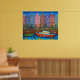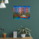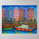 En livfull och stiliserad nattscen av Amsterdams färgstarka, smala hus längs kanalerna som skrivs ut av den populäre konstnären Lisa Lorenz