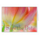 "Färg of Vår Tulip" Spara datumkortet. Den här lysande och trevliga besparingen av datumkortet är en roligt och ett festligt sätt att berätta för dina vänner och familj om bröllop. Tillgängliga storlekar: 7 x 5 tum (gratulationskort) eller 5,6 x 4 tum (anteckningskort). Produktlinjen "Färg of Vår Tulip" omfattar att spara datumkorten, USA-porten frimärke, bröllop-magneter och klistermärken, tack och OSA kort.