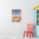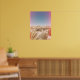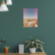 Denna poster mellan fullt och färg har en monolitisk mur av stenar i nationalparken Joshua Träd. Förgrunden till den här Kalifornienöknen är späckad med grönt buskar och agave, som alla accentueras av rosa mättade ljussken, som skapar ett vackert och höft biet av konst för vilket modernt hem eller sovrum som helst.