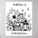 Mejeriberättelsen som jag poster färg. Barn eller vuxen poster med en söt älv som läser bok i en sats stora blommor bredvid ett lanternum.
