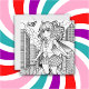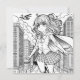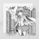 Färgkortets för barn, tonåring eller vuxen. En kvinnlig superhjälte som flyger genom staden himmel mellan byggnad och skyscraper. Styrning för klasser, lärare, dagskötare, förskolor eller födelsedagsfester.