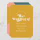 Den här enkla bröllopsinbjudan med snyggt innehåller återformaterad fotografi på framsidan över en bakgrund med anpassningsbar färg (som visas i en ljus gyllene gult). Baksidan innehåller en modern, hand plockade-geometrisk design i mörk teal blue, korallblått, orange, persika, gyllene gult och lätt lilak rosa/lila. På baksidan finns också en QR-kodmall för att dirigera gäster till webbplatsen bröllop. Anpassa texten eller radera den om du inte vill.