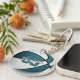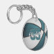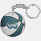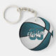 Den här sportbasketens tematiska akryliska nyckelkedja för flickor eller pojkar har en realistisk bild av en basket som har färgat alternerande teal- och vita paneler på vilka du enkelt kan anpassa idrottsmannens namn i ett namnteckning (eller autografi) stil vid spelarens jersey-nummer (i ett brev-teckensnitt med varierande storlek) - av katz_d_zynes