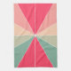 En design med 12 x 30 graders segment som var och en är uppdelad med en vit linje och i en palett med 5 färger med intilliggande segment överst och grund med samma färg skapande symmetri.
