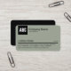 Ett affärskort med en 0,75-tums kvadratisk tonerstreck eller en färg-tabb överst lämnat för monogram initialer eller kan alternativt användas för en logotyp. Företag namn och företagstyp som är justerat bredvid fliken. Namn och arbetsnamn ordnas ovanför en vågrät, med adress, telefoni, e-post och webben nedan. Kortets baksida har samma initialer, namn och affärstyp på en plan färg-bakgrund men är placerad och placerad mitt på kortet. Den här mallen kan enkelt anpassas med dina egna detaljer eller anpassas ytterligare med din egen logotyp eller mindre typsnitt av standardtyp osv. Glöm inte att anpassa båda sidorna.