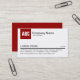 Ett affärskort med en 0,75-tums kvadratisk tonerstreck eller en färg-tabb överst lämnat för monogram initialer eller kan alternativt användas för en logotyp. Företag namn och företagstyp som är justerat bredvid fliken. Namn och arbetsnamn ordnas ovanför en vågrät, med adress, telefoni, e-post och webben nedan. Kortets baksida har samma initialer, namn och affärstyp på en plan färg-bakgrund men är placerad och placerad mitt på kortet. Den här mallen kan enkelt anpassas med dina egna detaljer eller anpassas ytterligare med din egen logotyp eller mindre typsnitt av standardtyp osv. Glöm inte att anpassa båda sidorna.