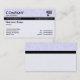 En mall för visitkort för snyggt med färg-huvud och svart band. Den logotyp som används i mallen kommer från en av Zazzles typsnitt bild som kan vara som dekorativ egenskap i sig eller som kan ersättas med din egen logotyp. Utformningen av den grundläggande mallen upprepas på baksidan som kan lämnas som den är eller användas för ytterligare information. Lämpligt för många typer av företag.