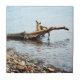 Ett foto av ett dött träd tvättat en strand till en klippstrand.