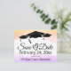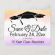 Skicka det här meddelandet om vykort som innehåller en färgstark överkant och grund-vattenfärg med svart text på vitt "Spara datum" för klassåterförening. Anpassa texten i mallens fält för fram- och tillbaka eller klicka på anpassa för att välja det teckensnitt stil, storleka och färg som du vill använda.