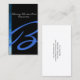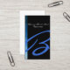 Ett enkelt spektrum av övertoningsblått färg på den lämnat sidan av den här designen över en svart jet-bakgrund skickar fokus till ditt namn och till en första monogram. Din första text visas i matchande färg, med ett stort men smakfullt skriptteckensnitt. Denna formgivnings generiska karaktär gör att kortet i namn är lämpligt för nästan alla typer av företag eller industrier.