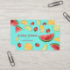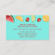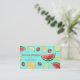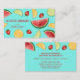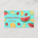 Desteis illustration av olika typer av frukt på ljusblå bakgrund färg. Frukterna är vattenmelon, orange, jordgubbar och kalk. Det finns också textområden som kan anpassas efter namn, yrke och kontaktuppgifter.