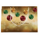 Desteis ursprungliga illustration av olika julbalar i färg på en vacker bågbakgrund. Det finns grönt-, rött- och guldfärgade julbalkar i färg i utformningen. Det finns också två anpassningsbara textområden.