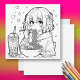 Ett sött färgkort för alla som älskar Ramen. En anime-tjej som äter Ramen-nudlar och dricker boba-te. Baksidan är tom så att du kan skriva ett personligt meddelande eller för vem som färglägger det att signera det.