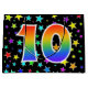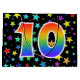 Den här spännande, roligt- och vibranta presentsäcksdesignen har en färgstark stjärna fält mönster, tillsammans med siffran "10" som har ett flerfärgat regnbågsspektrum som övertoning mönster, på en svart färgad. En presentpåse som denna kan vara ett sätt att på roligten slå in presenter eller gåvor som ges för någons tioårsdag, eller kanske för ett par tioårsdag för bröllop eller något annat tioårsevenemang. [~Z0000347]