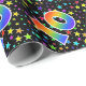 Denna spännande, roligt och pulserande pappra utformning har en färgstark stjärna som inspirerade mönster, fält, tillsammans med siffran "10" med ett flerfärgat regnbågsspektrum som övertoning mönster, på en svart färgad. Att skriva papper som detta skulle kanske vara ett roligt för att slå in presenter eller gåvor som ges för någons tioårsdag, eller kanske för ett par tioårsdag för bröllop eller något annat tioårsevenemang. [~Z0000345]