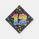 Den spännande, roligt och pulserande pappra napkin-designen har en färgstark stjärna fält mönster, tillsammans med siffran "12" med ett flerfärgat regnbågsspektrum som övertoning mönster, på en svart färgad. Pappra servetter av detta slag kan vara roligt till använda vid ett party-högtidlighållande av någons tolfte födelsedag, eller kanske ett pars tolfte bröllop-årsdag, eller någon annan 12:e-händelse. [~Z0000346]