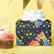 Denna spännande, roligt och pulserande pappra utformning har en färgstark mönster av stjärnformer, tillsammans med siffran "27" med ett flerfärgat regnbågsspektrum som mönster, på en svart färgad. Att kasta papper som detta skulle kanske vara ett roligt för att figurera presenter eller gåvor som ges för någons tjugosjunde födelsedag, eller kanske för ett par:s tjugosjunde bröllop-årsdag eller något annat tjugosjunde evenemang. [~Z0000345]