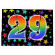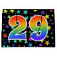 Den här spännande, roligt- och vibranta presentsäcksdesignen har en färgstark stjärna i mönster, tillsammans med siffran "29" med ett flerfärgat regnbågsspektrum som övertoning mönster, på en svart färgad. En presentsäck som denna kan vara en roligt, ett sätt att slå in gåvor eller presenter på för någons tjugonionde födelsedag, eller kanske för ett par tjugonionde bröllop-årsdagen eller något annat 29:e evenemang. [~Z0000347]