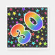 Den spännande, roligt och pulserande pappra napkin-designen har en färgstark stjärna i mönster, tillsammans med siffran "30" med ett flerfärgat regnbågsspektrum som mönster, på en svart färgad. Pappra servetter som denna kan vara roligt till använda vid ett party som hålls för att fira någons trettioårsdag, eller kanske ett pars trettionde bröllop-årsdag, eller något annat trettioårsevenemang. [~Z0000346]