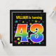 Den spännande, roligt och vibrerande födelsedagsfest inbjudan-designen har en färgstark mönster av stjärnformer, tillsammans med siffran "43" med en flerfärgad regnbåge som spektrum eller övertoning mönster. Namn på framsidan kan anpassas. Baksidan innehåller personlig om party. Födelsedagsfest inbjudan som detta kan skickas till gäster från inbjudan till en födelsedagsfest som hålls för att fira någons fyrtiotredje födelsedag. [~Z0000349]