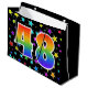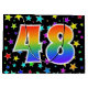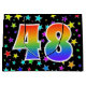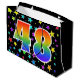 Den här spännande, roligt- och vibranta presentsäcksdesignen har en färgstark stjärna i mönster, tillsammans med siffran "48" med ett flerfärgat regnbågsspektrum som övertoning mönster, på en svart färgad. En presentpåse som denna kan vara ett sätt att på roligten slå in presenter eller gåvor som ges för någons fyrtioåttonde födelsedag, eller kanske för ett pars fyrtioåttonde bröllop-årsdag eller något annat fyrtioåttonde evenemang. [~Z0000347]