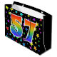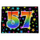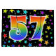Denna spännande, roligt och klara presentsäck har en färgstark stjärna fält mönster, tillsammans med siffran "57", som har ett flerfärgat regnbågsspektrum som mönster, på en svart färgad. En presentsäck som denna skulle kanske kunna vara ett sätt att slå in gåvor eller presenter på roligt för någons femtiosjunde födelsedag, eller kanske för ett pars femtiosjunde bröllop-årsdag eller något annat femtiosjunde evenemang. [~Z0000347]
