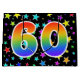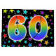 Den här spännande, roligt- och vibranta presentsäcksdesignen har en färgstark stjärna fält mönster, tillsammans med siffran "60" med ett flerfärgat regnbågsspektrum som övertoning mönster, på en svart färgad. En presentväska som denna kan vara en roligt, ett sätt att slå in gåvor eller presenter på för någons sextioårsdag, eller kanske för ett par sextioårsdag i bröllop eller något annat sextioårsjubileum. [~Z0000347]