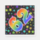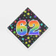 Den spännande, roligt och pulserande pappra napkin-designen har en färgstark mönster av stjärnformer, tillsammans med siffran "62" med ett flerfärgat regnbågsspektrum som mönster, på en svart färgad. Pappra servetter som denna kan vara roligt till använda vid ett party när man firar någons sextioandra födelsedag, eller kanske ett pars sextioandra bröllop-årsdag, eller något annat 62:a evenemang. [~Z0000346]