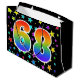 Den här spännande, roligt- och vibranta presentsäcksdesignen har en färgstark stjärna i mönster, tillsammans med siffran "68" med ett flerfärgat regnbågsspektrum som övertoning mönster, på en svart färgad. En presentpåse som denna kan vara ett sätt att på roligten slå in presenter eller gåvor som ges för någons sextioåttonde födelsedag, eller kanske för ett pars sextioåttonde bröllop-årsdag eller något annat sextioåttonde evenemang. [~Z0000347]