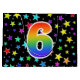 Den här spännande, roligt- och vibranta presentsäcksdesignen har flera färgstarka stjärnformer, tillsammans med siffran "6" med ett flerfärgat regnbågsinspirerat spektrumövertonat mönster, på en svart färgad. En presentsäck som denna skulle kanske kunna vara ett sätt att slå in gåvor eller presenter på roligt för någons sjätte födelsedag, eller kanske för ett par sjätte bröllop-årsdag eller något annat 6e-evenemang. [~Z0000347]
