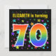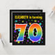 Den här roligten, spännande och pulserande födelsedagsfest inbjudan-designen har en färgstark stjärna mönster, tillsammans med siffran "70" med en flerfärgad regnbåge som spektrum eller övertoning mönster. Namn på framsidan kan anpassas. Baksidan innehåller information om anpassningsbarna om party. Födelsedagsfest inbjudan som detta kan skickas till potentiella gäster under en födelsedagsfest som hålls för att fira någons 70-årsdag. [~Z0000349]