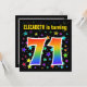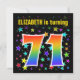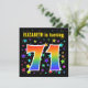 Den här roligten, spännande och pulserande födelsedagsfest inbjudan-designen har en färgstark stjärna som formar mönster, tillsammans med siffran "71" med en flerfärgad regnbåge som spektrum eller övertoning mönster. Namn på framsidan kan vara personlig. Baksidan innehåller information om anpassadet om party. Födelsedagsfest inbjudan som detta kan skickas till gäster från inbjudan till en födelsedagsfest som hålls för att fira någons sjuttioårsdag. [~Z0000349]