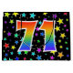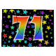 Denna spännande, roligt och klara presentsäck har en färgstark stjärna fält inspirerat mönster, tillsammans med siffran "71" som har ett flerfärgat regnbågsspektrum som mönster, på en svart färgad. En presentsäck som denna kan vara en roligt, ett sätt att slå in gåvor eller presenter på för 70 första födelsedag, eller kanske för ett par 70 första bröllop-årsdag eller något annat 71:a evenemang. [~Z0000347]
