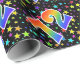 Denna spännande, roligt och pulserande pappra utformning har en färgstark stjärna som formar mönster, tillsammans med siffran "72" med ett flerfärgat regnbågsspektrum som mönster, på en svart färgad. Det kan vara en roligt, ett sätt att slå in gåvor eller presenter på lycklig för att fylla en sjuttioandra födelsedag, eller kanske för ett par sjuttioandra bröllop-årsdagen, eller för något annat 72:a evenemang. [~Z0000345]