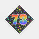 Den här spännande, roligt och pulserande pappra napkin-designen har många färgstarka stjärnformer, tillsammans med siffran "73" med en flerfärgad regnbågsinspirerad spektrumövertoning mönster, på en svart färgad. Pappra servetter som denna kan vara roligt till använda vid ett party som hålls för att fira någons sjuttiotredje födelsedag, eller kanske ett pars sjuttiotredje bröllop-årsdag, eller något annat 73:e evenemang. [~Z0000346]
